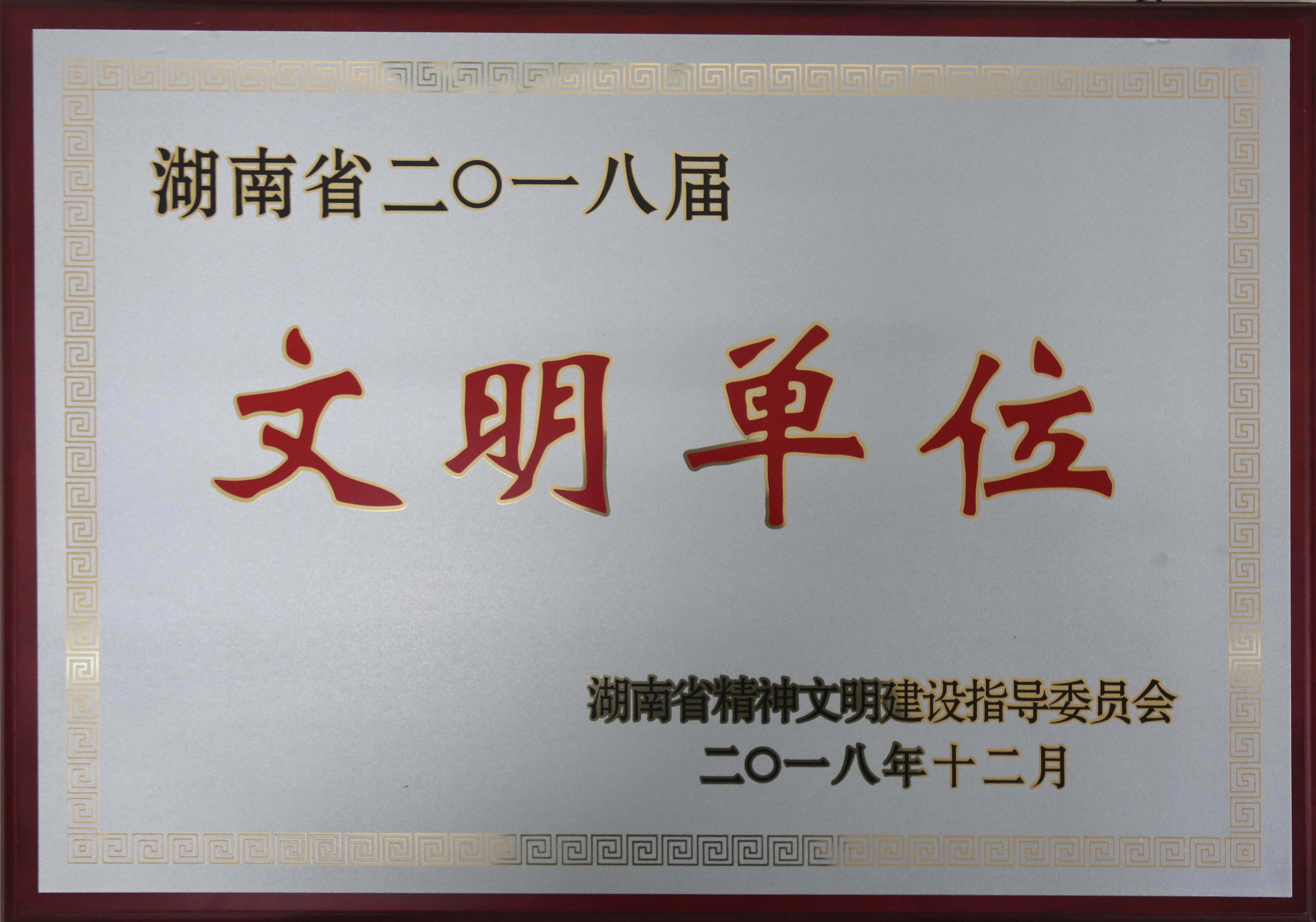 2018年12月被湖南省精神文明建設(shè)指導(dǎo)委員會(huì)評(píng)為“湖南省二〇一八屆文明單位”
